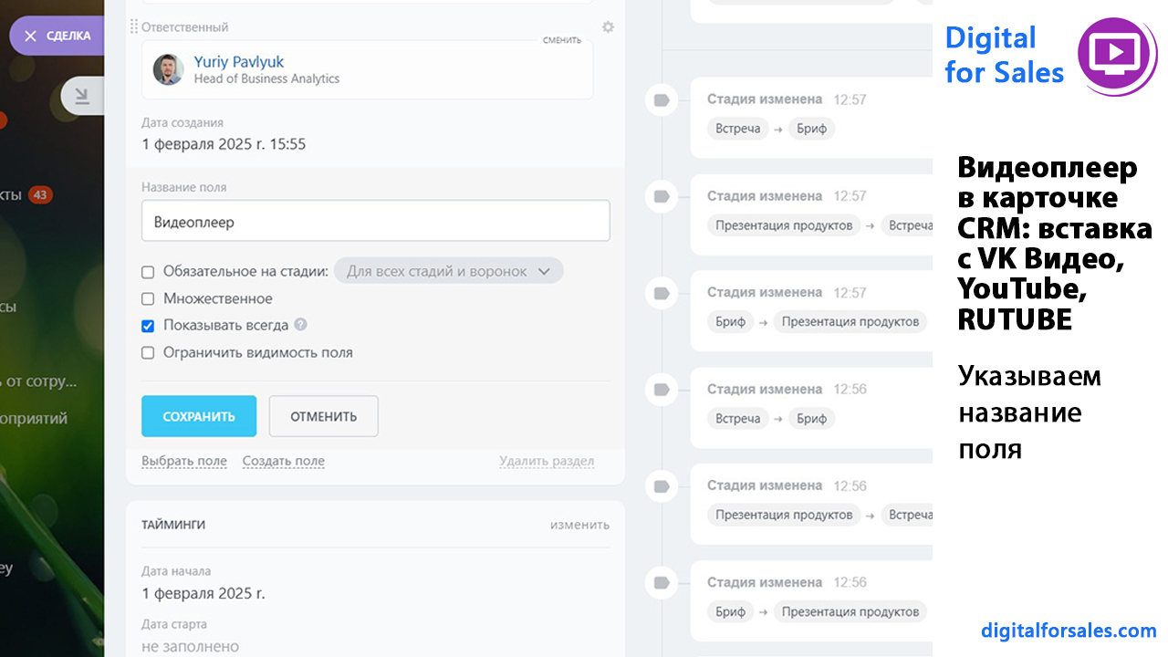 - Как повысить конверсию сделок в Битрикс24 с помощью видеоподсказок прямо в карточке CRM