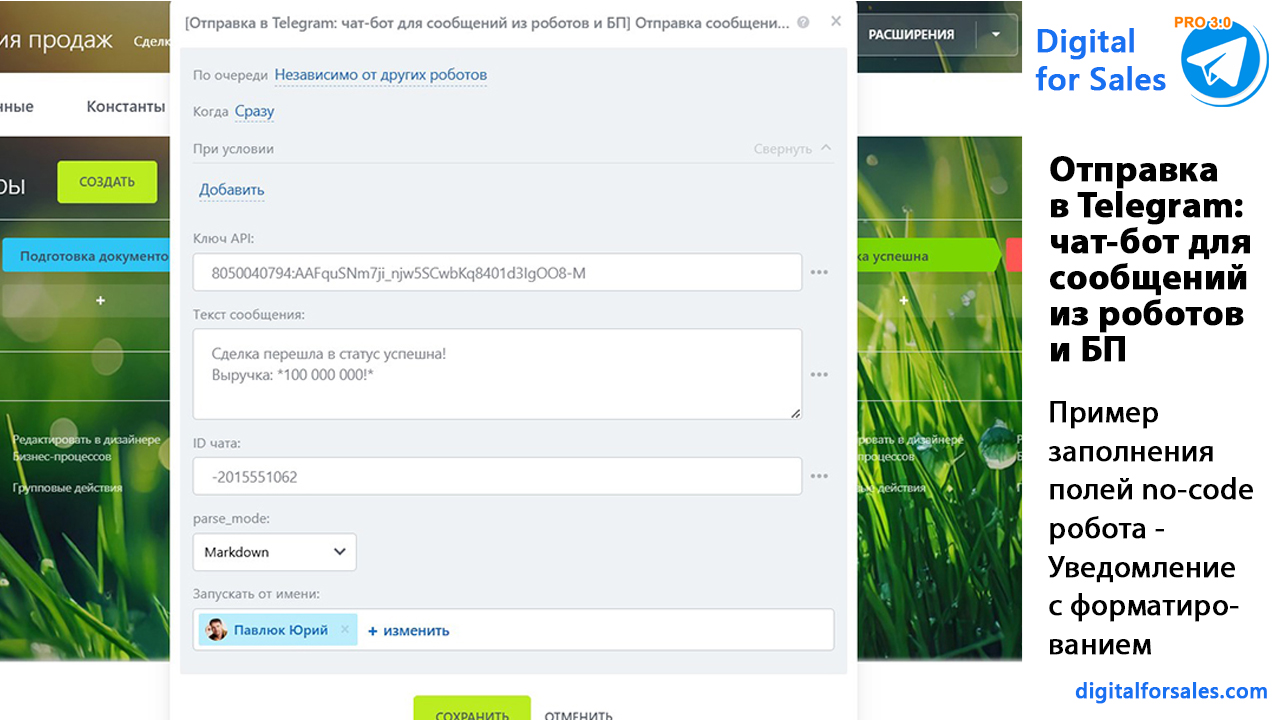 Решение: чат-бот для отправки сообщений из роботов и БП