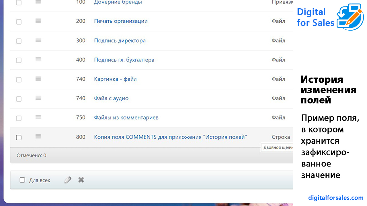 - Проверьте код поля-дубля (служебного поля), которое создает решение для истории.