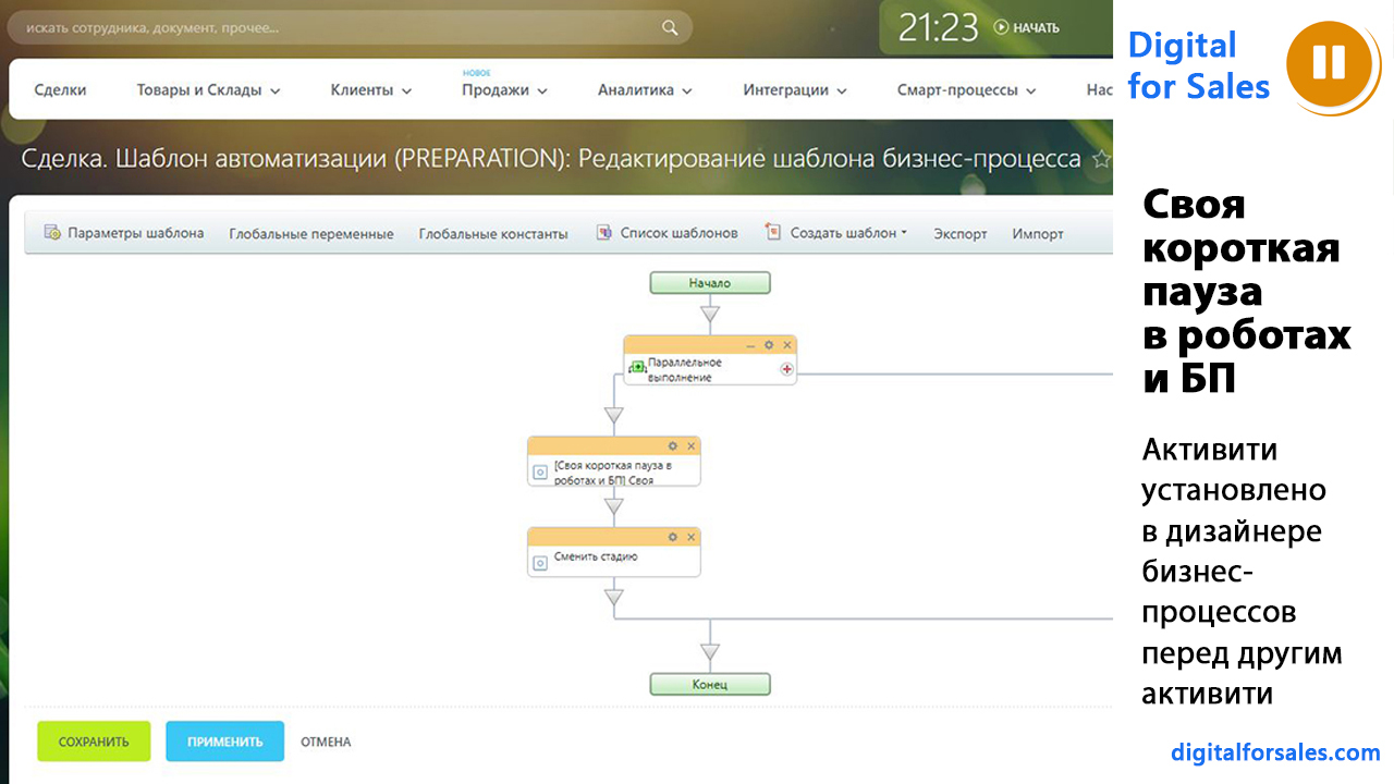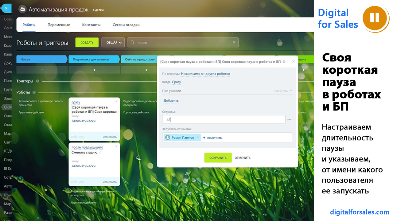 - Как поставить паузу 1 минуту или несколько секунд в роботах Битрикс24