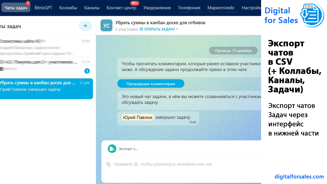 - Можно ли выгрузить чаты Битрикс24 в CSV?