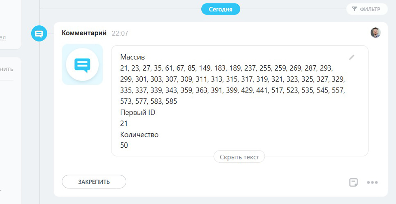 Представьте, я руководитель. Чтобы узнать, сколько коммуникаций с компаниями из топ-100 сделали восемь менеджеров, мне пришлось бы спрашивать каждого или вручную собирать фильтры. Даже если я нашел бы 195 коммуникаций, посчитать минимальный ID почти нереально. И даже если я смог бы это сделать глазами — что дальше? Как этим управлять?