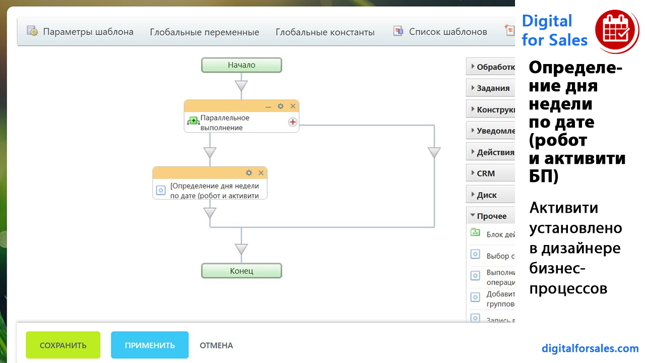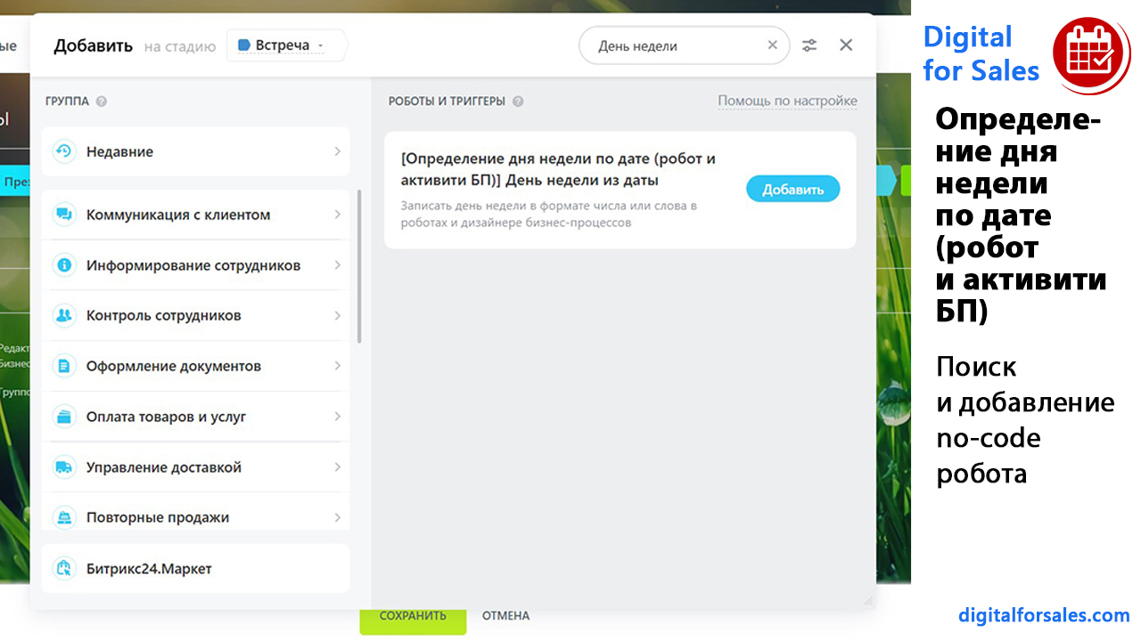 - Как в Битрикс24 определить день недели по дате в роботах и бизнес-процессах