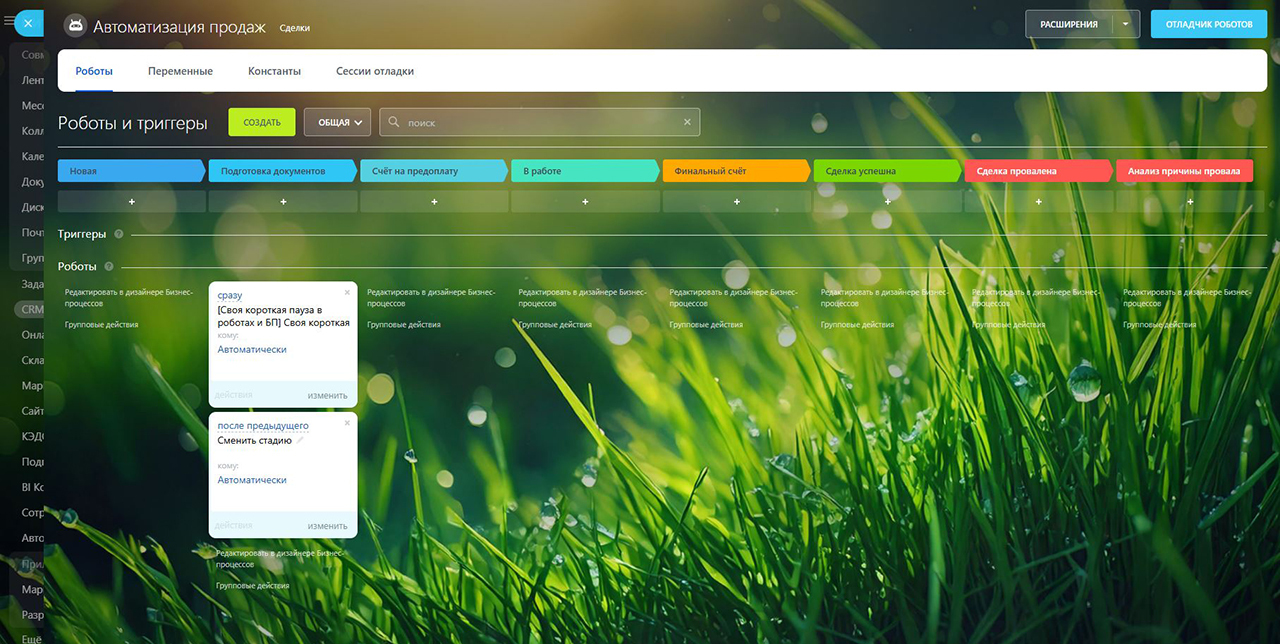 Смотрим, как всё устроено на тестовом стенде. Вот у нас колонка «Встреча». Я хочу, чтобы карточка, попав сюда, пробыла в этой колонке всего 5 секунд, а затем перелетела в следующую — «Бриф». Посмотрим, справится ли приложение.