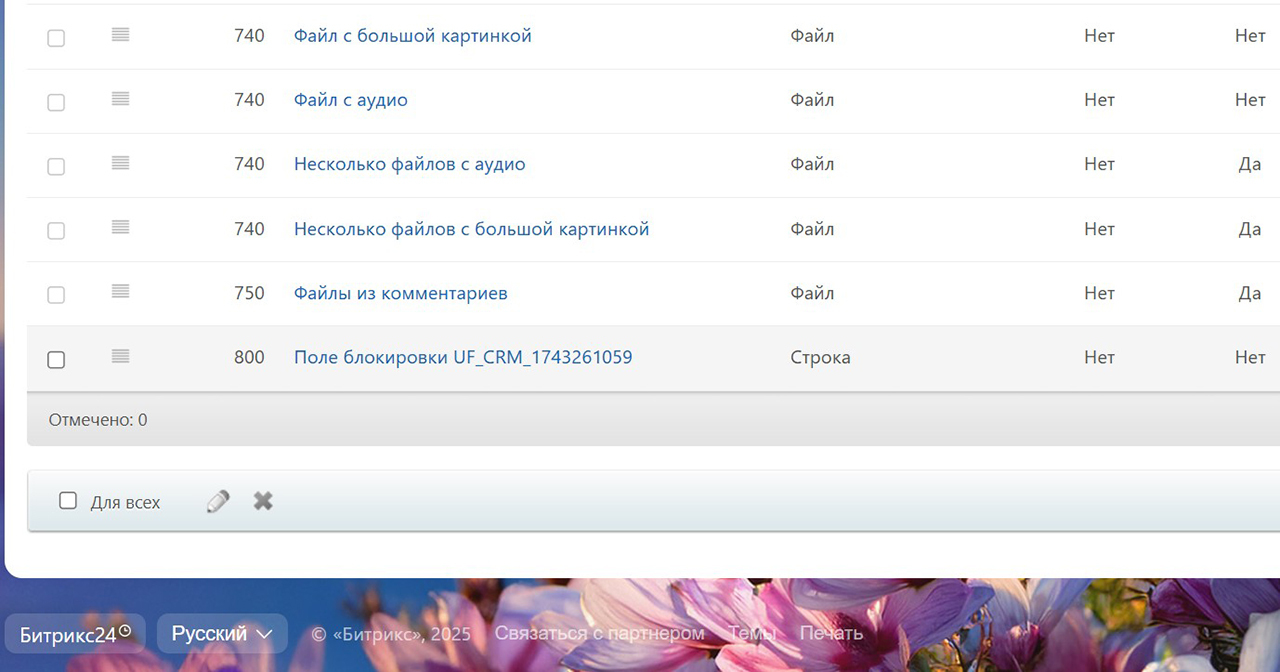 Почему это возможно? Потому что при добавлении защиты создаётся скрытое поле-клон. Оно живёт среди пользовательских полей, находится в самом низу, код начинается на 800. Это внутренний служебный дубликат, в него падают эталонные данные. В выгрузках «все поля» оно тоже появится — это нормально. Просто знайте, что это техническая особенность. Таких полей немного — обычно три-четыре на компанию.